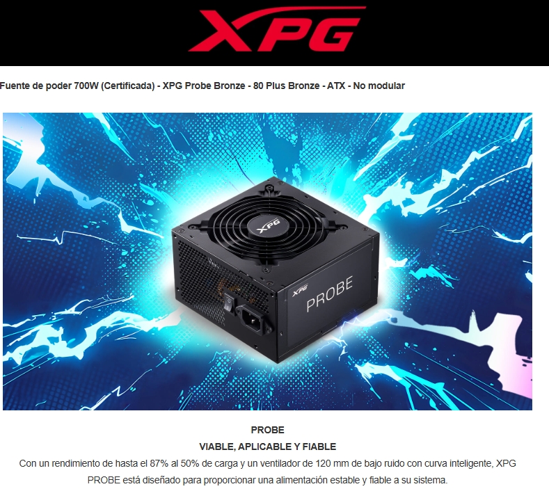 Excursión de potencia: +5 V / +3,3 V: 110 W | +12 V: 648 W | -12 V: 3,6 W | +5Vsb: 12,5 W